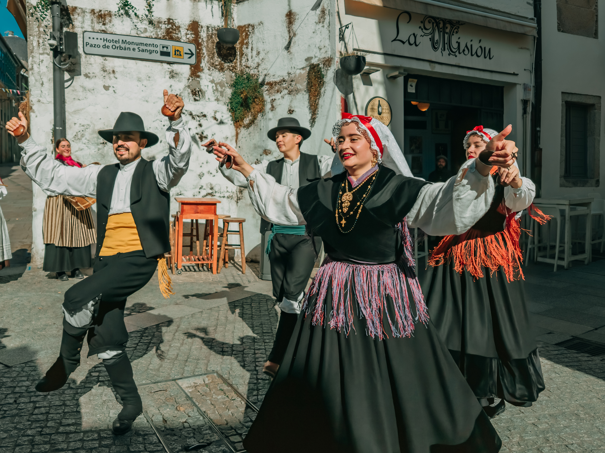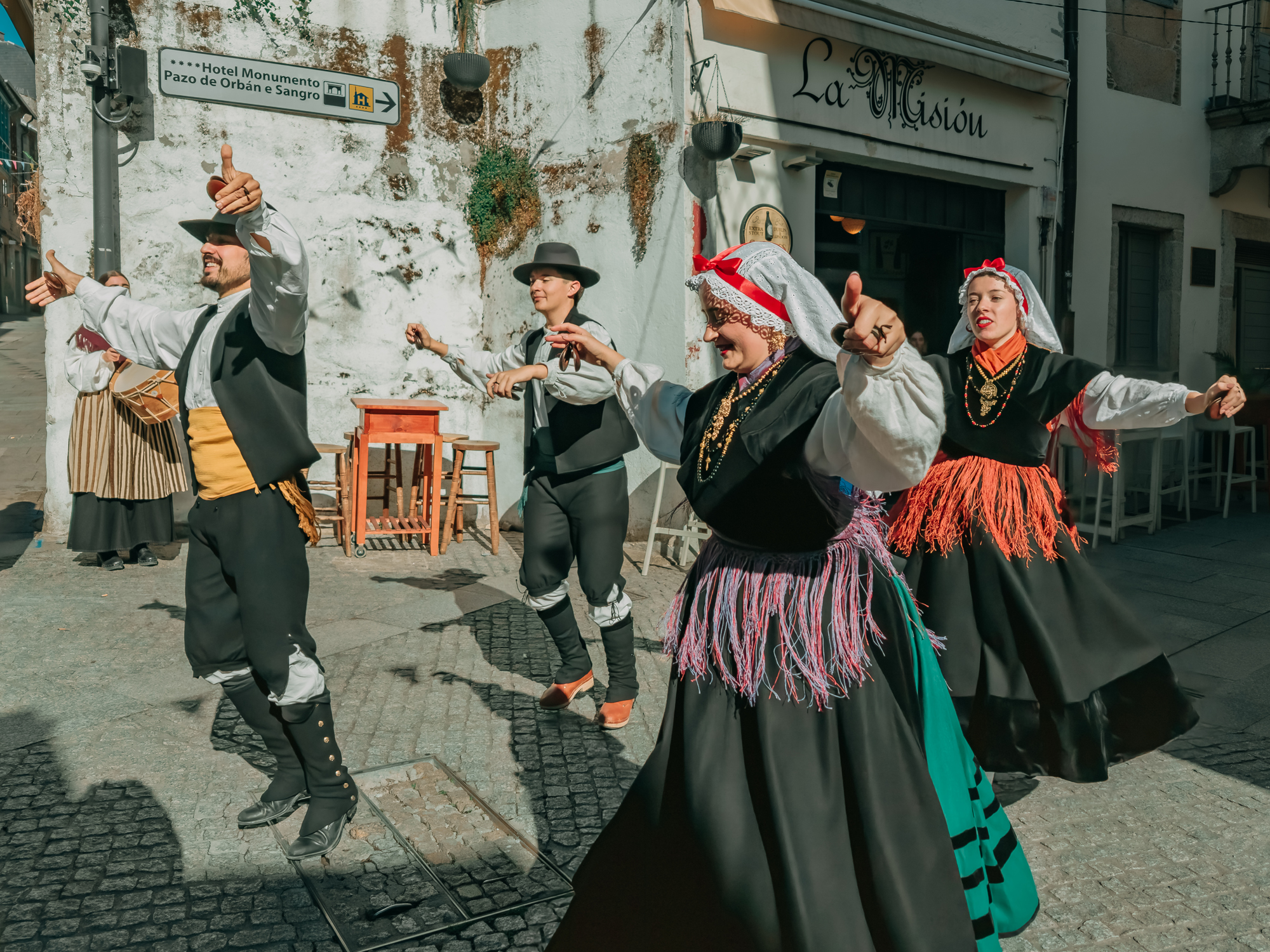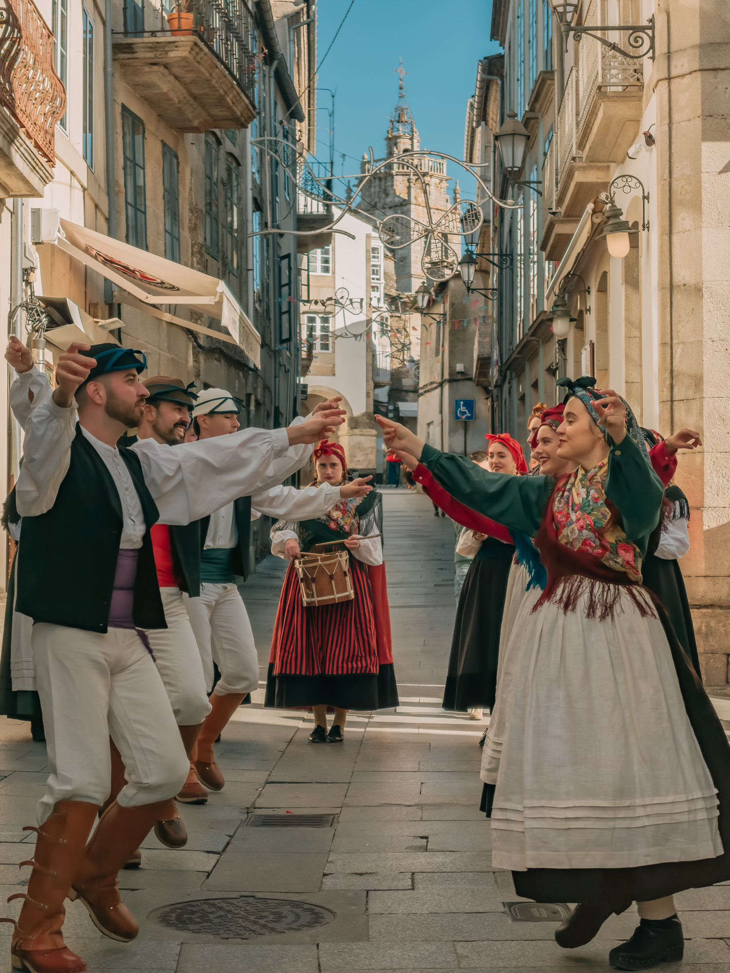 Music and dance remain at its heart — the sound of bagpipes leading the rhythm of the muiñeira, a spirited folk dance that embodies Galicia’s sense of community and joy. On the streets, you might spot locals wearing traditional outfits of embroidered shawls and wooden clogs, moving in step with melodies that have been passed down through generations.