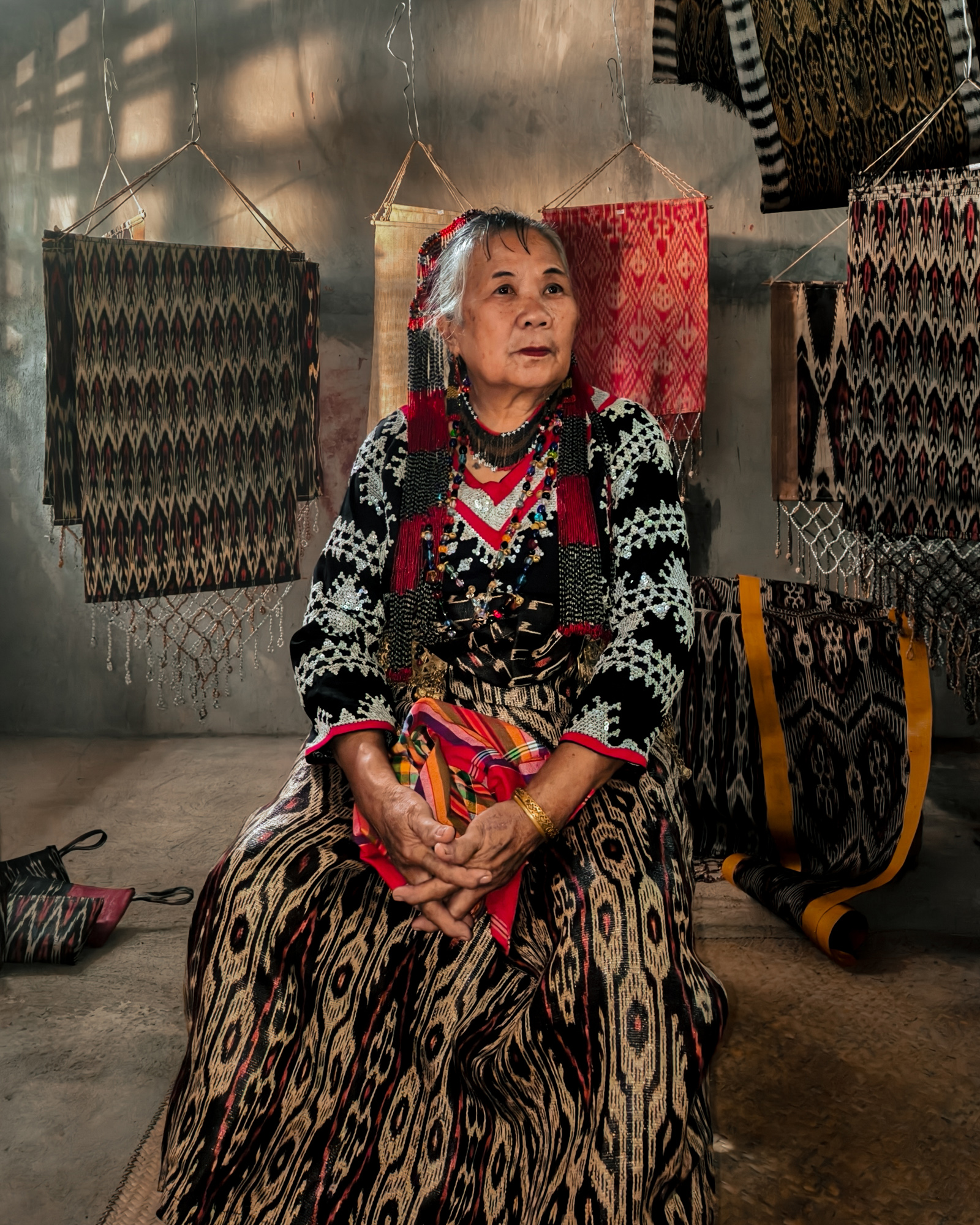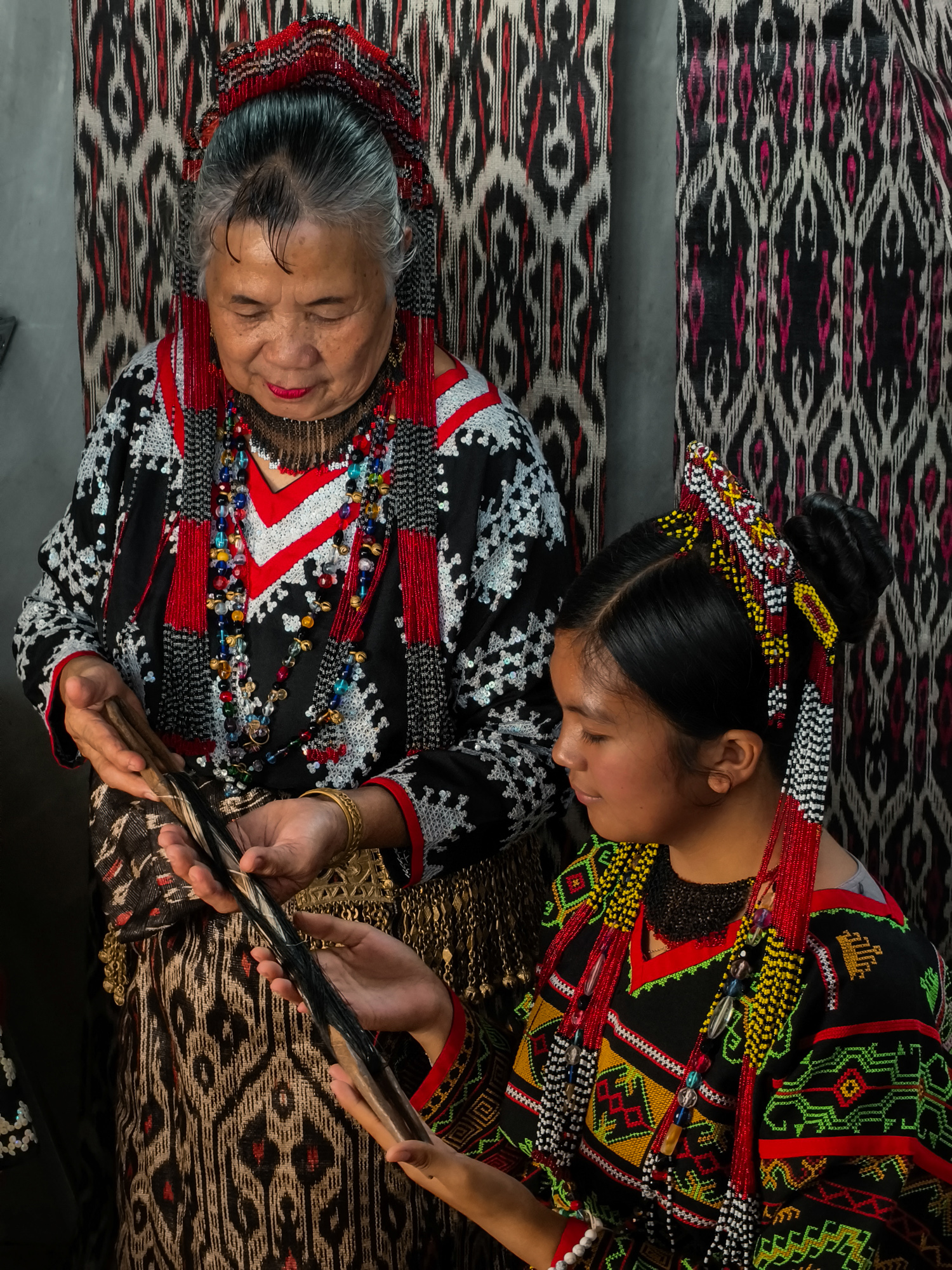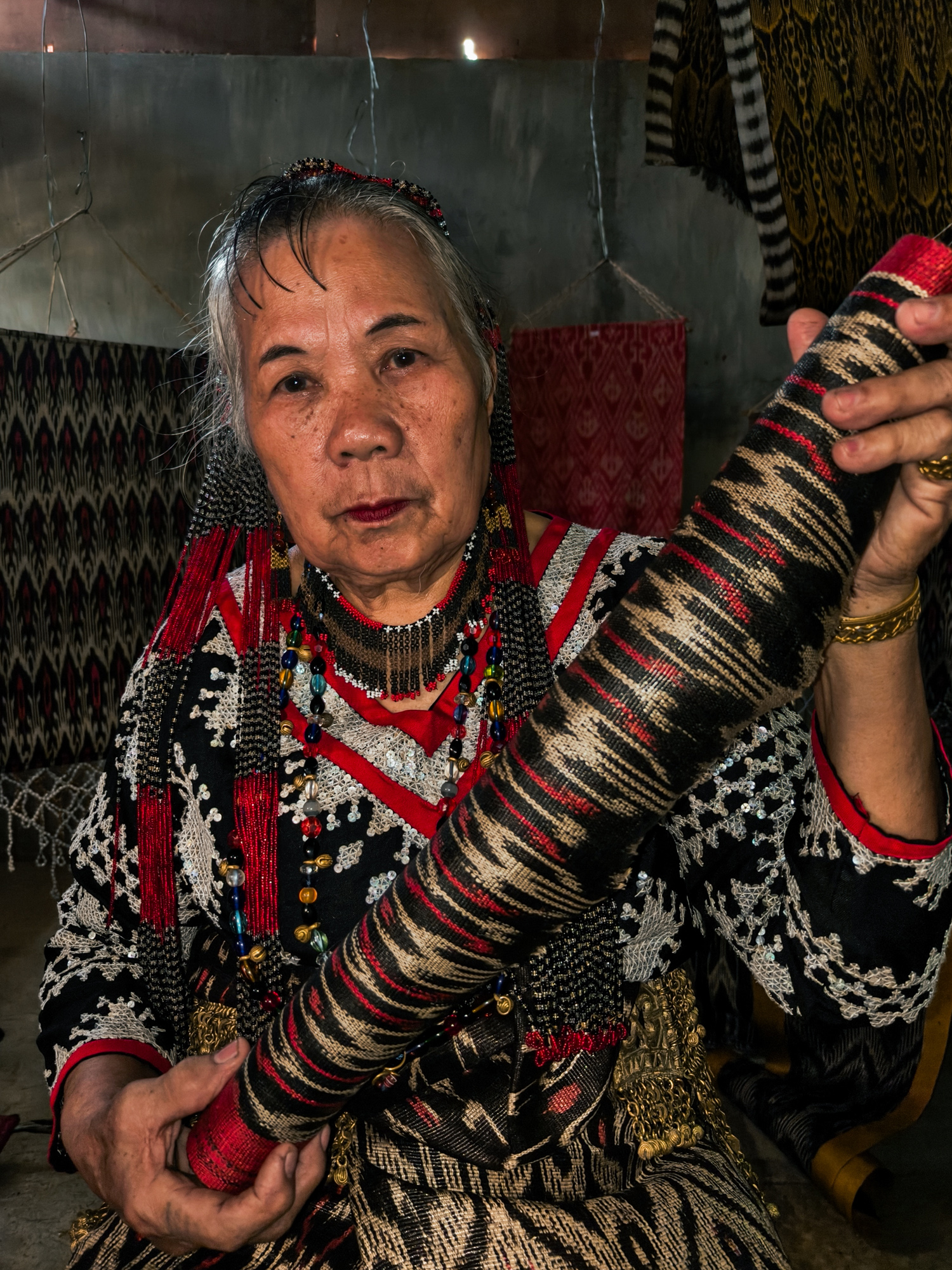 Today, her daughter-in-law Sebulan Dulay, now 80, celebrates that legacy. While she does not dream the patterns herself, she was taught directly by Lang Dulay. Sebulan teaches young weavers in her community, along with the rituals and meanings behind each motif.