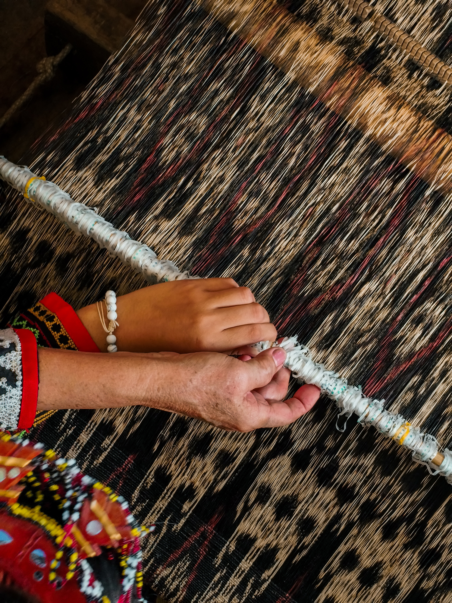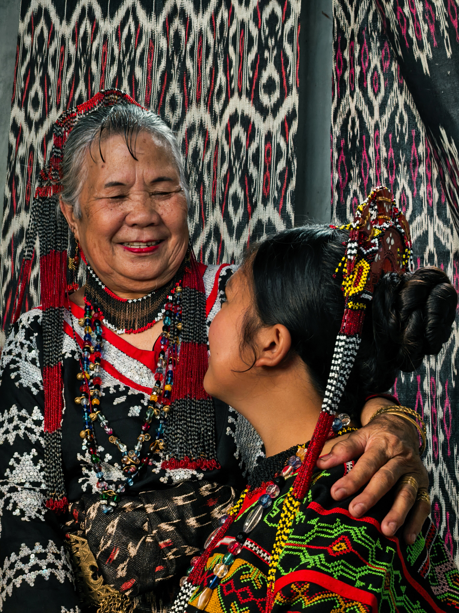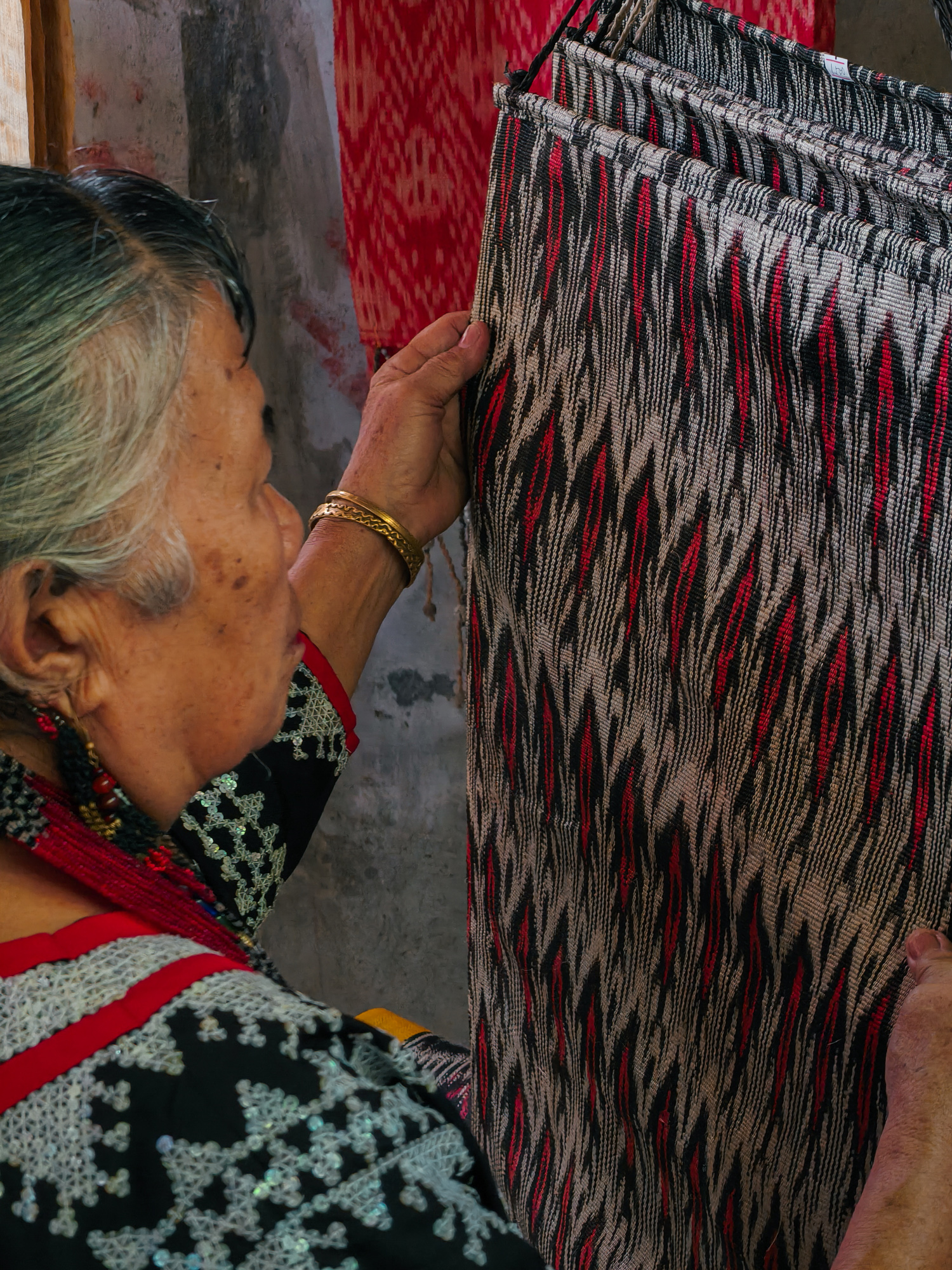 Today, her daughter-in-law Sebulan Dulay, now 80, celebrates that legacy. While she does not dream the patterns herself, she was taught directly by Lang Dulay. Sebulan teaches young weavers in her community, along with the rituals and meanings behind each motif.